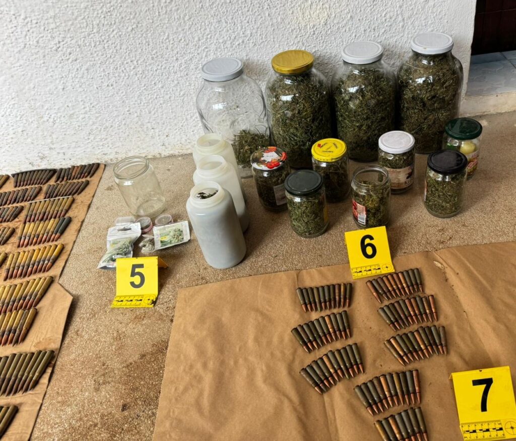 Prilikom pretresa pronađene su i privremeno oduzete tri puške, veća količina vojne municije različitog kalibra, neutvrđena količina NN suhe zeljaste materije koja svojim izgledom asocira na opojnu drogu marihuanu, kao i neutvrđena količina NN sjemenki.