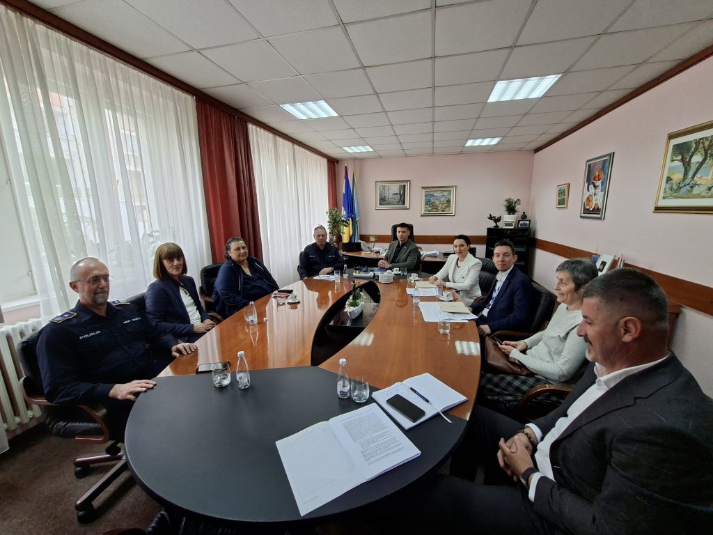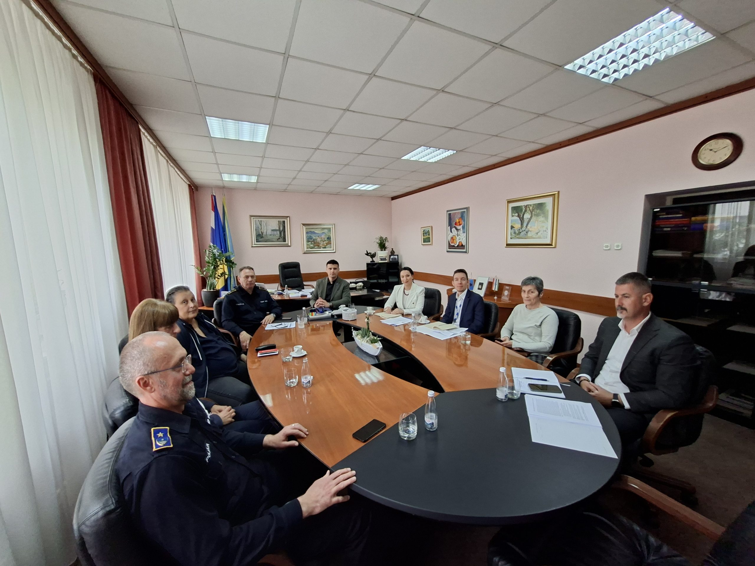 Delegacija OESS-a, predvođena šeficom Terenskog ureda OESS-a u Mostaru, Julijom Vitanovom, zajedno s višim političkim savjetnikom glavnog ureda Guidom Almerigognom i timom Misije za vladavinu prava, sastala se 21.04.2026. godine s ministrom unutrašnjih poslova HNK-a Marijom Marićem, komesarom Robertom Perićem, načelnikom Policijske uprave Čapljina Ivanom Milićevićem i načelnikom Sektora uniformisane policije kako bi razgovarali o trenutnoj bezbjednosnoj situaciji.