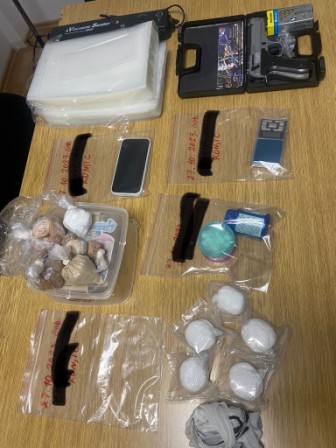 Prilikom pretresa kod osumnjičenog je pronađeno 220,26 grama praškaste tvari koja asocira na heroin, 60,13 grama bijele praškaste tvari koja asocira na kokain, 391,39 grama praškaste tvari koja asocira na speed. Također je pronađen plinski pištolj marke „EkolFiretMagnum“ i 50 komada streljiva, digitalna vaga, vakumirka, PVC vrećice za vakumiranje i mobilni telefon.