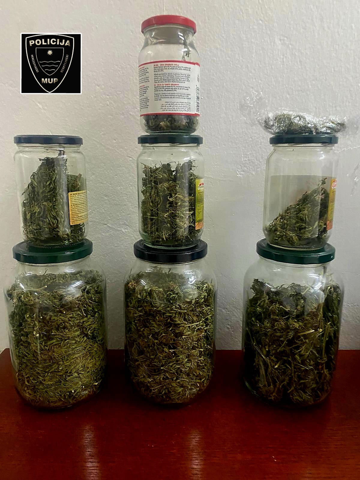Prilikom kontrole vozila i osobe, isti je policijskim službenicima dobrovoljno predao sedam staklenih tegli i jednu PVC vrećicu s većom količinom NN biljne materije koja svojim izgledom asocira na opojnu drogu marihuanu.